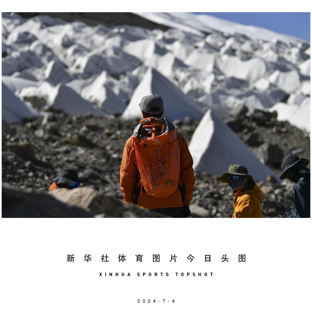 7月3日,登山愛好者在新疆慕士塔格峰高海拔地帶進行適應拉練。