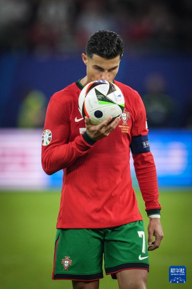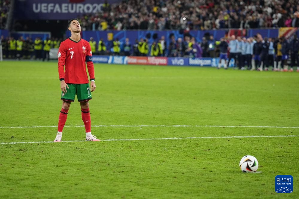 7月5日,葡萄牙隊球員克·羅納爾多在點球大戰中準備罰點球。新華社記者 潘昱龍 攝