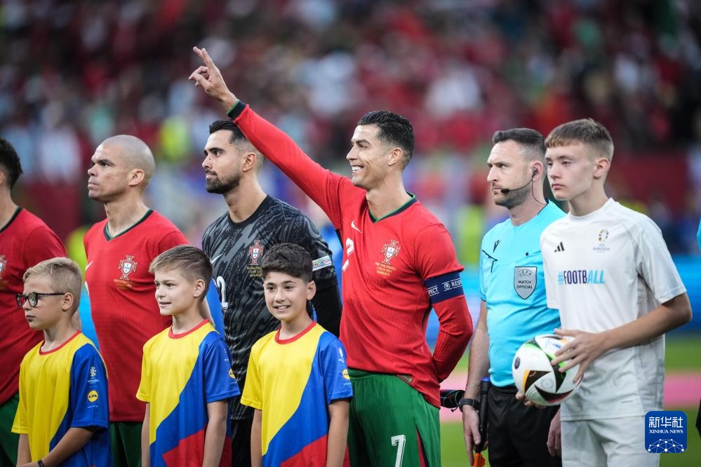7月5日,葡萄牙隊球員克·羅納爾多(中)在入場儀式上。新華社記者 潘昱龍 攝