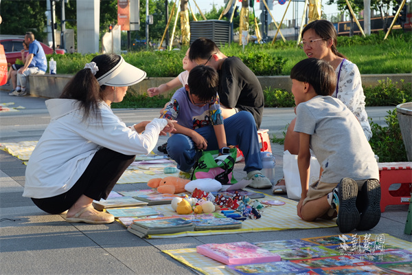 美食展銷區(qū)里,轄區(qū)商戶紛紛獻(xiàn)上“拿手好菜”,中式糕點(diǎn)、水餃包點(diǎn)、牛雜粉面、漢派鹵味等各式美食組成味蕾盛宴,吸引各方食客前來品嘗購買。慈善捐贈(zèng)區(qū),居民們積極捐獻(xiàn)愛心,并抽取消費(fèi)優(yōu)惠券和漆扇制作等互動(dòng)體驗(yàn)券。非遺體驗(yàn)區(qū)里,水墨暈染精美漆扇,糖畫醞釀香甜氣息,眾人體驗(yàn)非遺文化魅力、感悟匠心傳承。跳蚤市場里,轄區(qū)小朋友的愛心義賣熱火朝天……現(xiàn)場處處充滿歡聲笑語。
