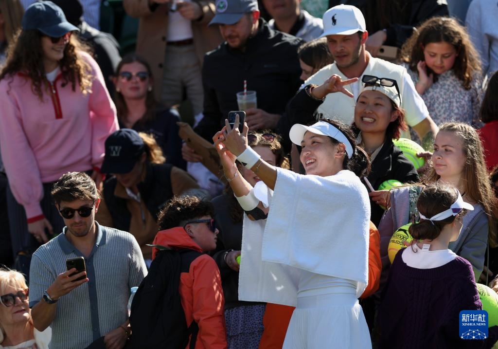 7月6日,王欣瑜賽后與球迷自拍合影。新華社記者 韓巖 攝
