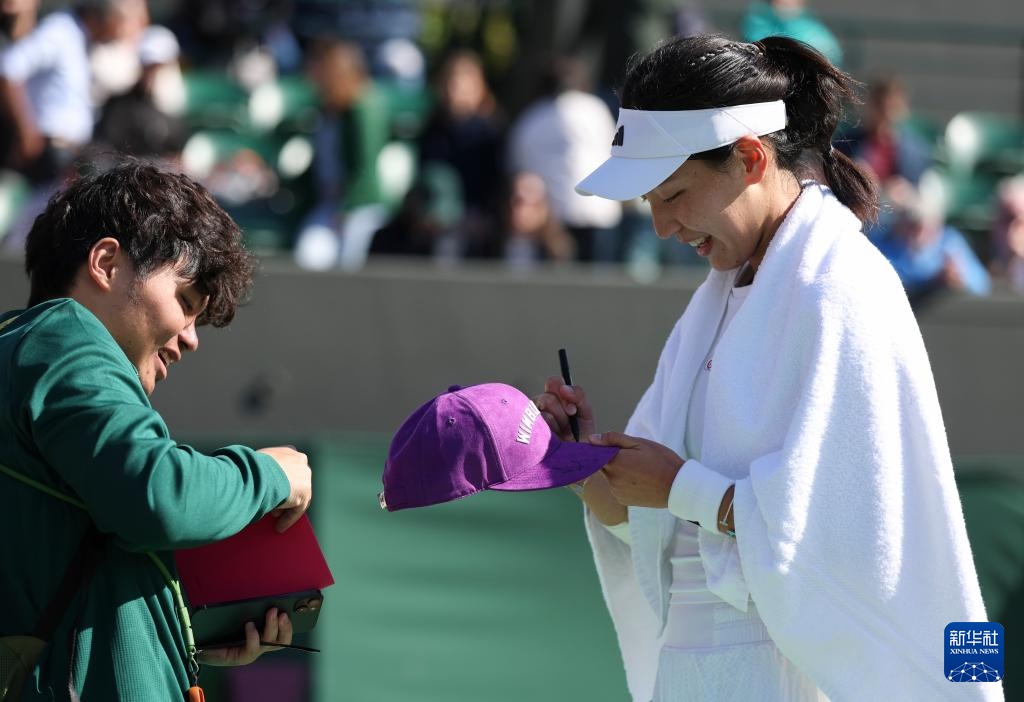 7月6日,王欣瑜賽后為球迷簽名。新華社記者 韓巖 攝