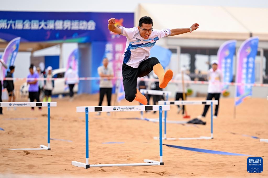 7月7日,參賽選手在沙漠障礙賽中跨欄。新華社記者 馮開華 攝