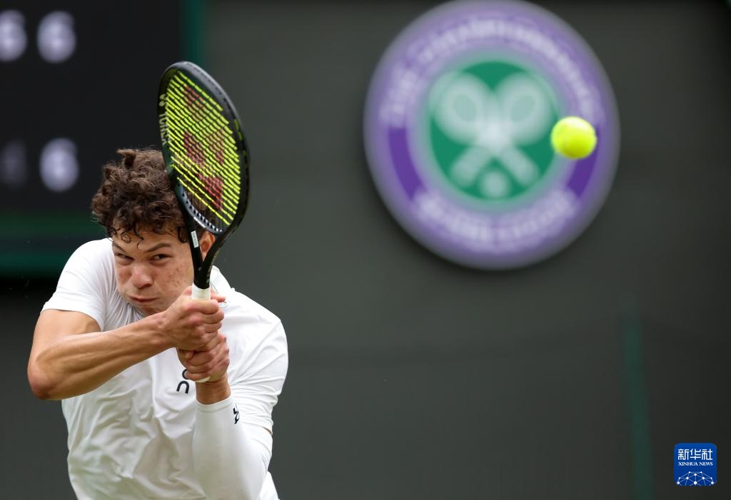 7月7日,謝爾頓在比賽中回球。新華社記者 韓巖 攝