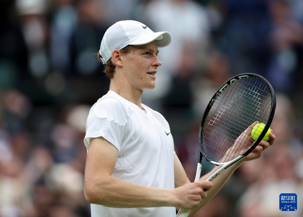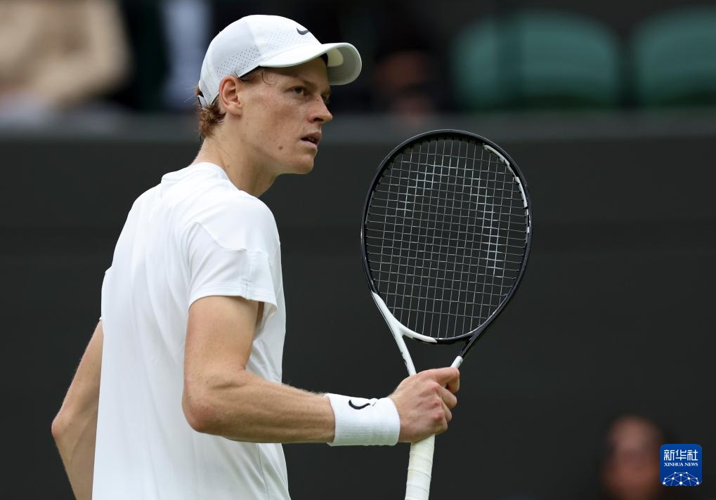 7月7日,辛納在比賽中回球。新華社記者 韓巖 攝