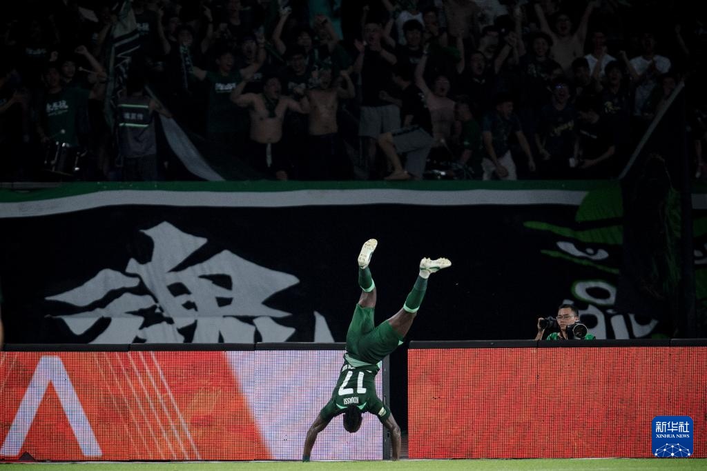7月7日,浙江隊球員埃弗拉進球后慶祝。新華社記者 江漢 攝