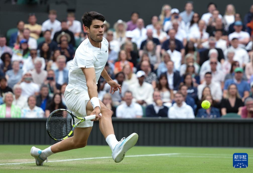 7月7日,阿爾卡拉斯在比賽中。新華社記者 韓巖 攝