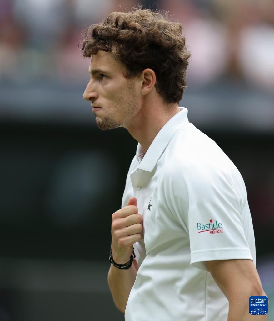 7月7日,阿爾卡拉斯在比賽中慶祝得分。新華社記者 韓巖 攝