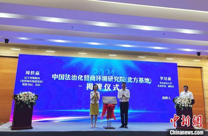 同時,遼寧省數據局(省營商環境建設局)黨組書記、局長周軼贏與羅培新共同為中國法治化營商環境研究院北方基地揭牌。據悉,華東政法大學在沈陽建立此基地,意在打造北方地區權威性、創新性、前沿性法治化營商環境區域性研究機構,為政府及部門決策提供法治引領、技術支撐。