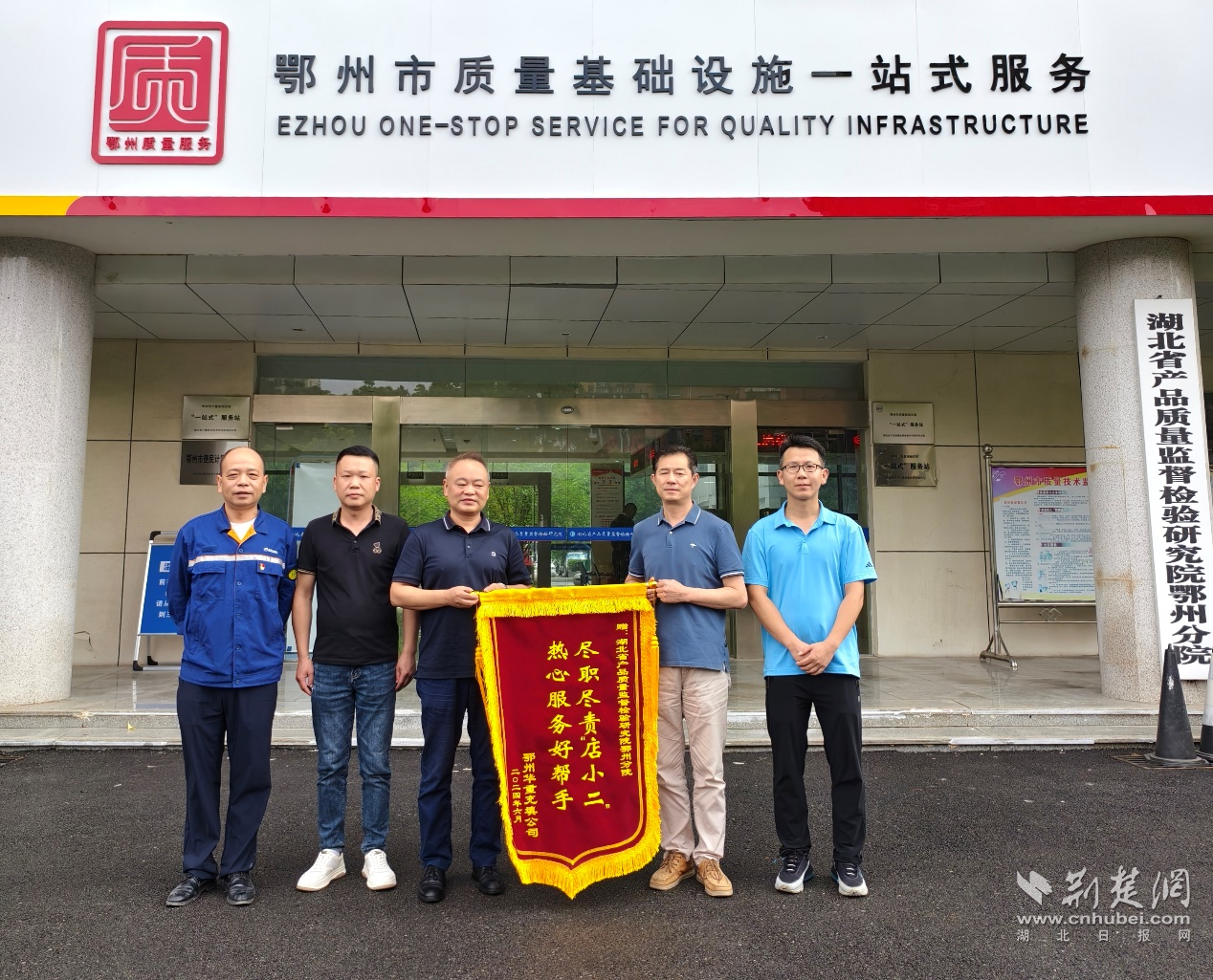 荊楚網(湖北日報網)訊(通訊員劉書恒)7月2日上午,鄂州華重充填工程材料有限公司負責人來到湖北省質檢院鄂州分院服務站(以下簡稱“服務站”),將一面印有“熱心服務好幫手盡職盡責‘店小二’”的錦旗送到工作人員手中,對服務站一直以來為其排憂解難、熱情服務表示感謝。