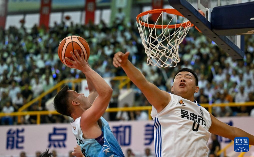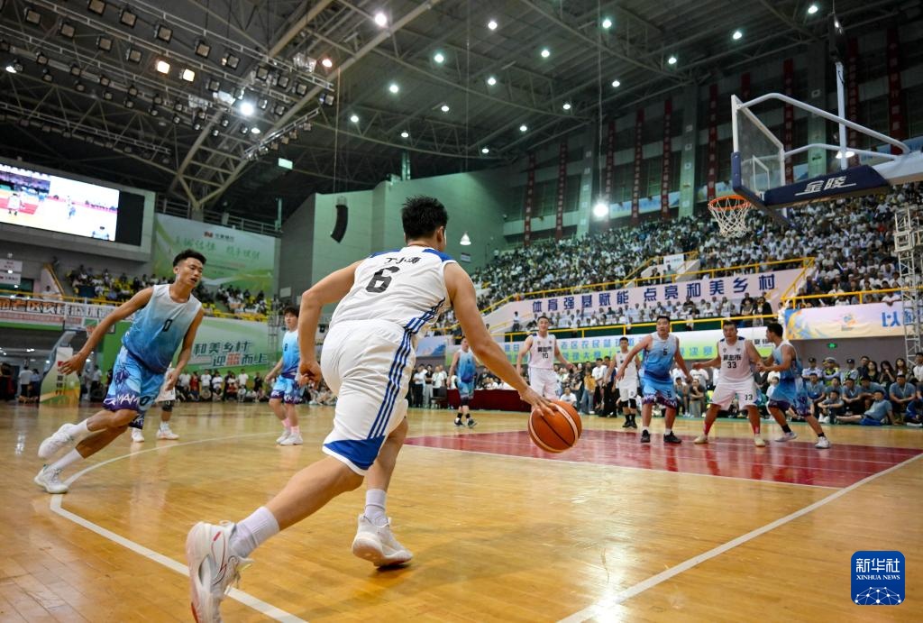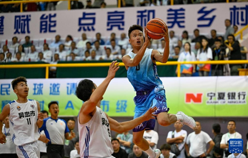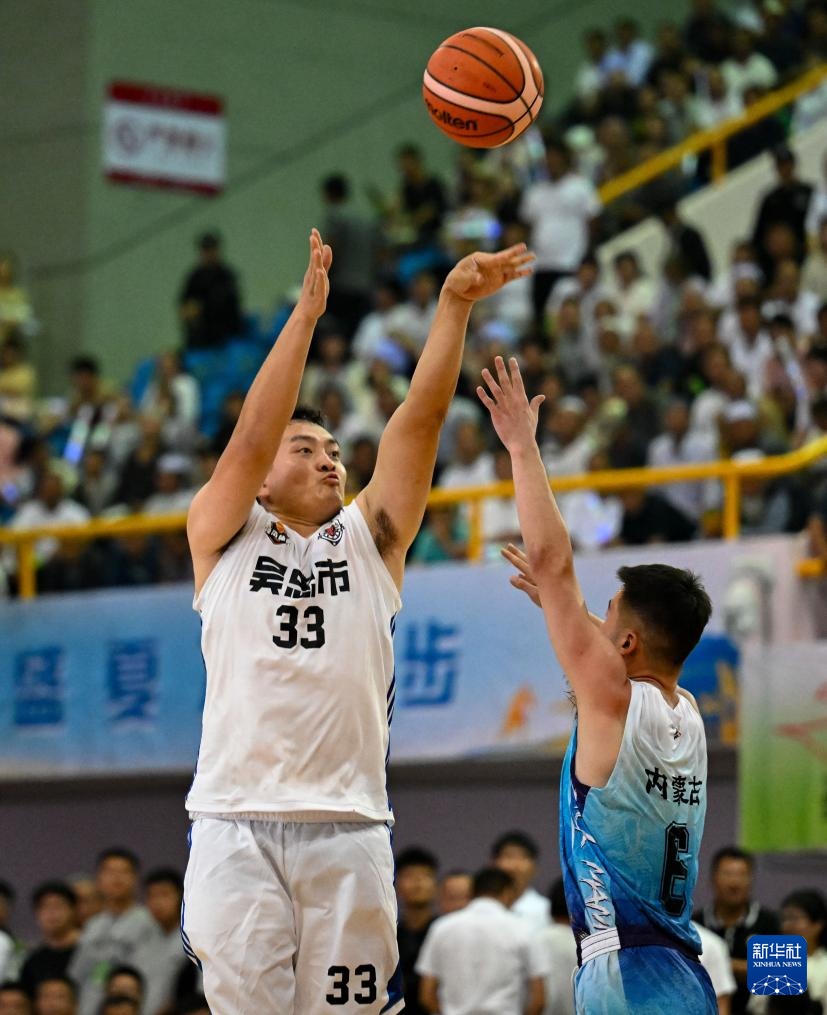 7月9日,寧夏吳忠市利通區古城鎮代表隊球員楊浩(右一)在比賽中投籃。新華社記者 馮開華 攝