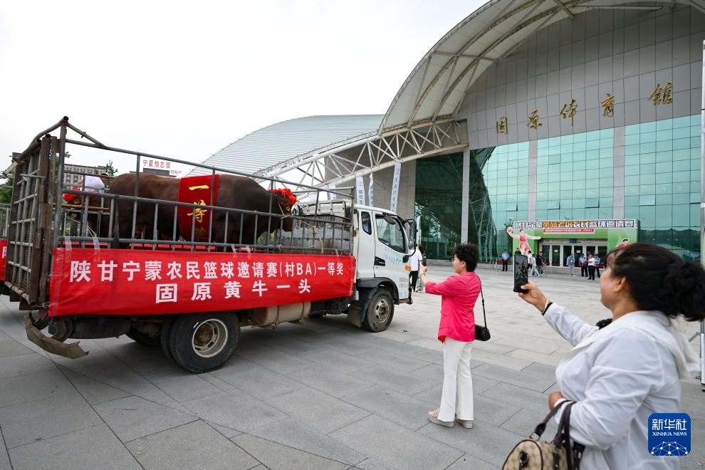 7月9日,本次比賽一等獎獎品固原黃牛被運至場館附近,吸引觀眾拿出手機拍攝記錄。新華社記者 馮開華 攝