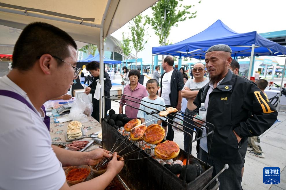 7月9日,觀眾在比賽場館外購買小吃。新華社記者 馮開華 攝