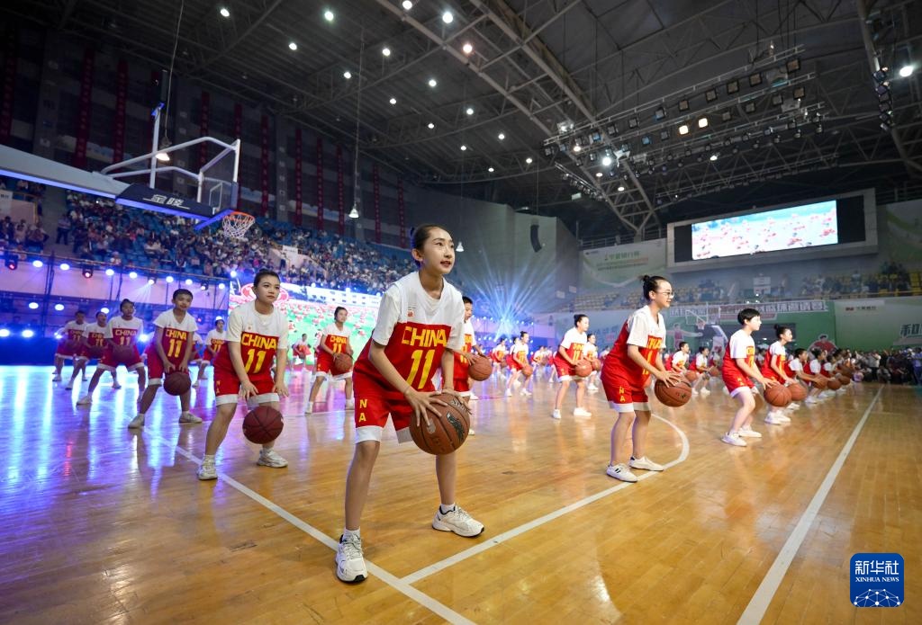 這是7月9日在比賽間隙拍攝的籃球表演。新華社記者 馮開華 攝