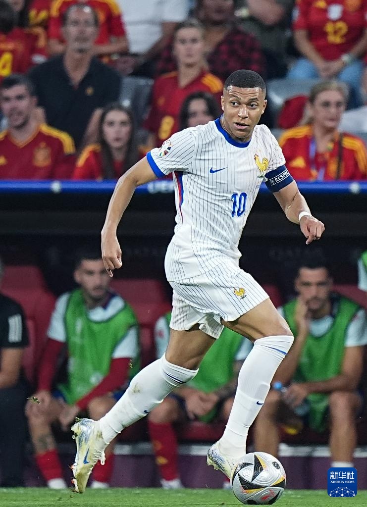 7月9日,法國隊球員姆巴佩在比賽中帶球。新華社記者 張帆 攝