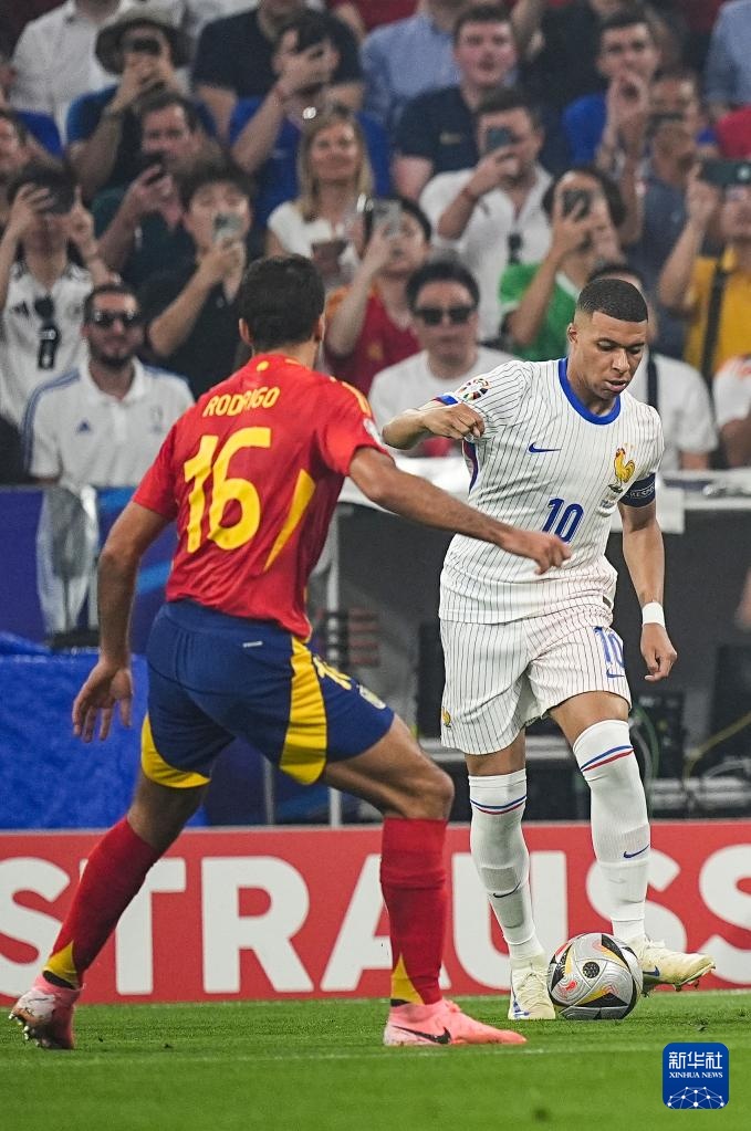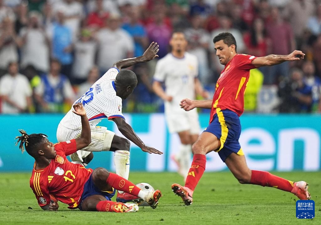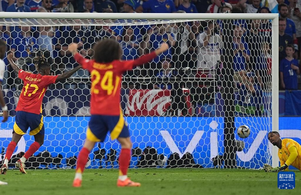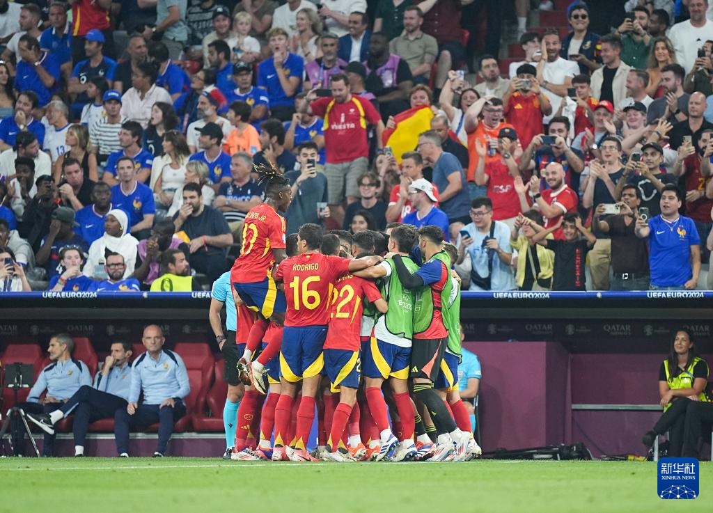當日,在德國慕尼黑進行的2024歐洲足球錦標賽半決賽中,西班牙隊2比1戰勝法國隊,晉級決賽。