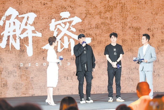 導演陳思誠、演員劉昊然推介暑期檔新片《解密》。 本報記者 和冠欣攝