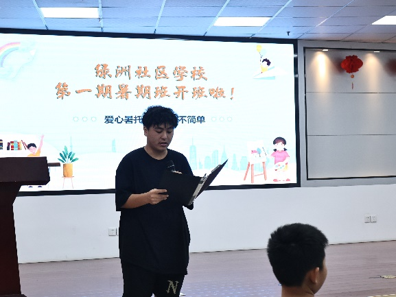 活動(dòng)伊始,夷陵區(qū)綠洲社區(qū)副書(shū)記楊明與“荊彩”實(shí)踐隊(duì)隊(duì)長(zhǎng)何川共同主持開(kāi)營(yíng)儀式。“荊彩”實(shí)踐隊(duì)的志愿者受到了綠洲社區(qū)和暑期托管班小朋友的熱烈歡迎。