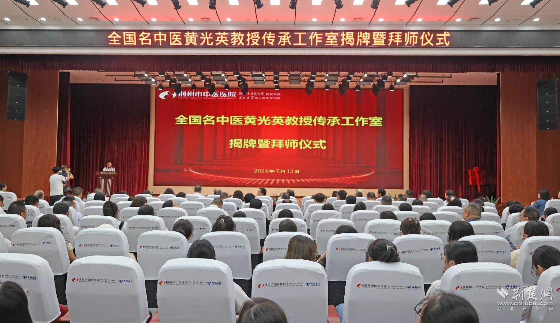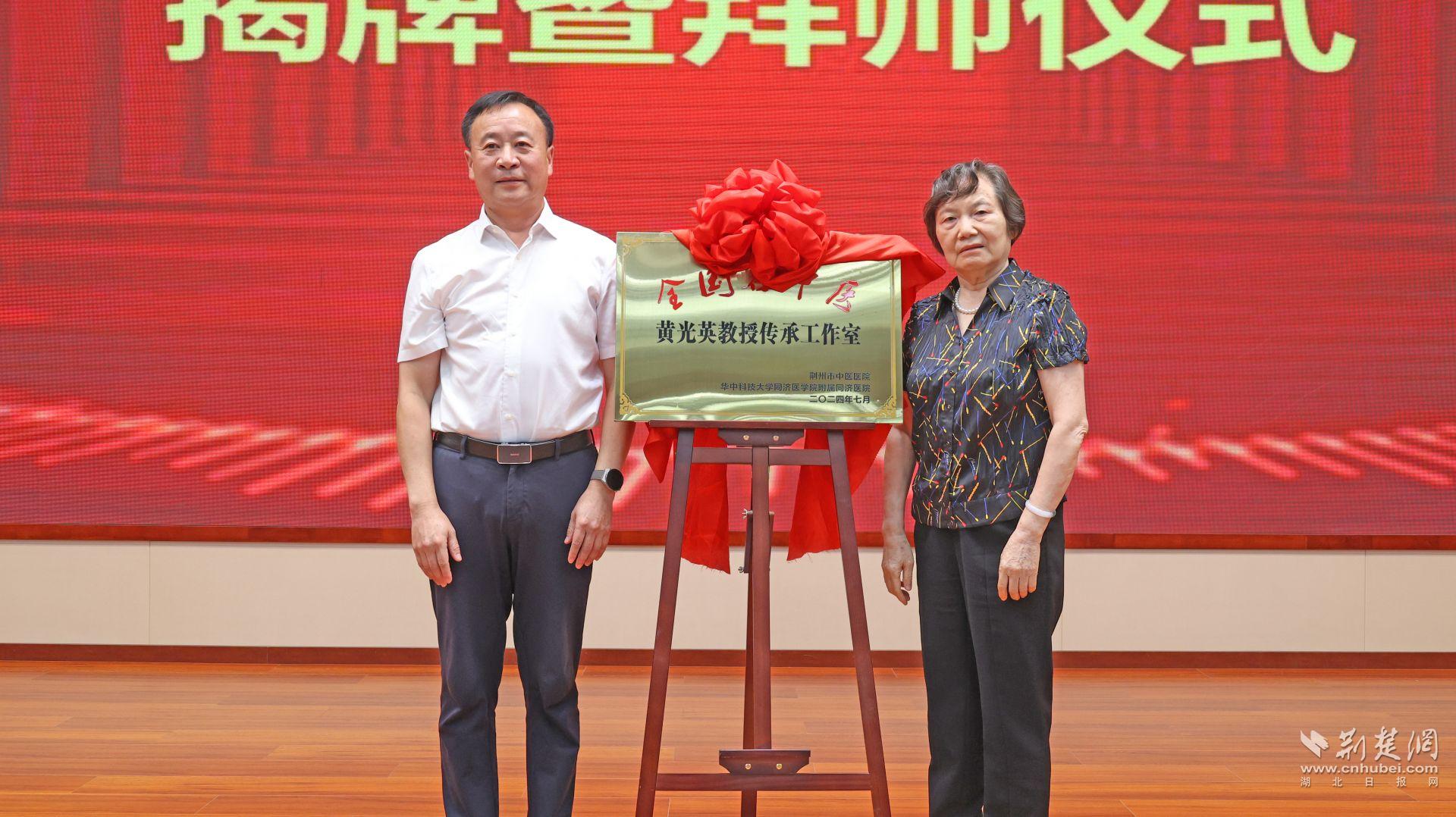 荊楚網(湖北日報網)訊(記者 付逸飛 通訊員 汪振華 李夢)7月13日上午,全國名中醫黃光英教授傳承工作室揭牌暨拜師儀式在荊州市中醫醫院舉行,這既是華中科技大學同濟醫學院附屬同濟醫院與荊州市中醫醫院深化合作的具體體現,也是荊州市中醫藥“名醫、名科、名院”高質量發展的生動縮影。