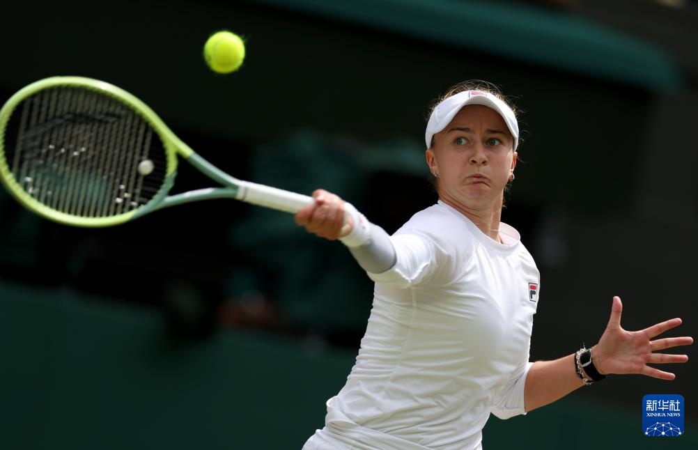 當日,在英國倫敦舉行的2024溫布爾登網球公開賽女單決賽中,意大利選手保利尼對陣捷克選手克賴奇科娃。新華社記者 李穎 攝