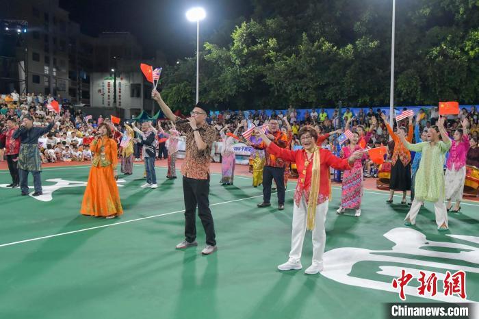 7月13日晚,2024年“九九杯”海南(文昌)鄉鎮排球聯賽鋪前站迎來一場中馬排球友誼賽。圖為馬來西亞專場演藝現場。中新網記者 駱云飛 攝