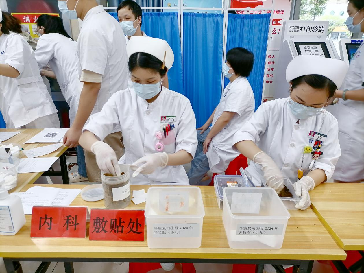 活動現(xiàn)場,醫(yī)護人員忙碌而有序地為市民提供“三伏貼”貼敷服務(wù),治未病中心、針灸科、呼吸與消化內(nèi)科等科室根據(jù)各自的臨床專業(yè)特點,為不同年齡層、不同體質(zhì)的患者量身定制貼敷方案。同時,按照嚴格的傳統(tǒng)工藝,藥劑師現(xiàn)場精心炮制、打粉、煉油、制膏,最終制成一張張具有溫陽散寒、增強體質(zhì)功效的“三伏貼”。