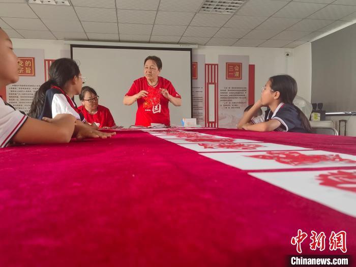 李影蘭正在給非遺手工愛好者講解剪紙技術。 石洪宇 攝