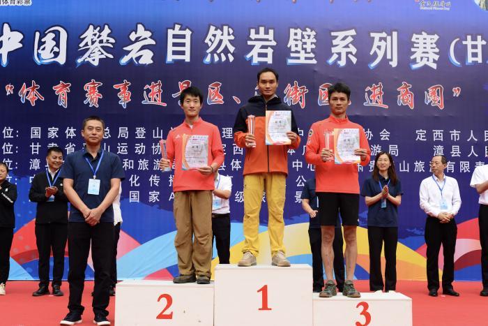 宋梟(中)獲得本站比賽男子專業組冠軍。主辦方供圖
