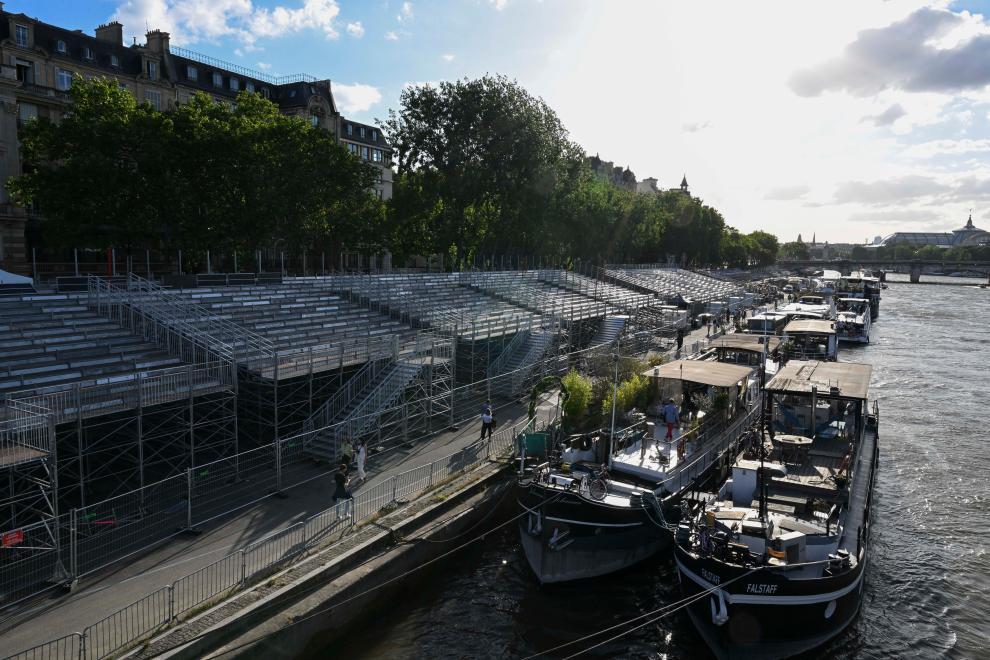 ↑塞納河畔開幕式看臺(7月4日攝)。新華社記者 賀長山 攝
