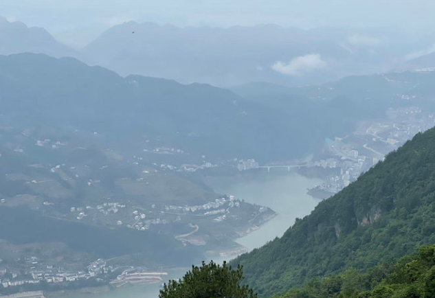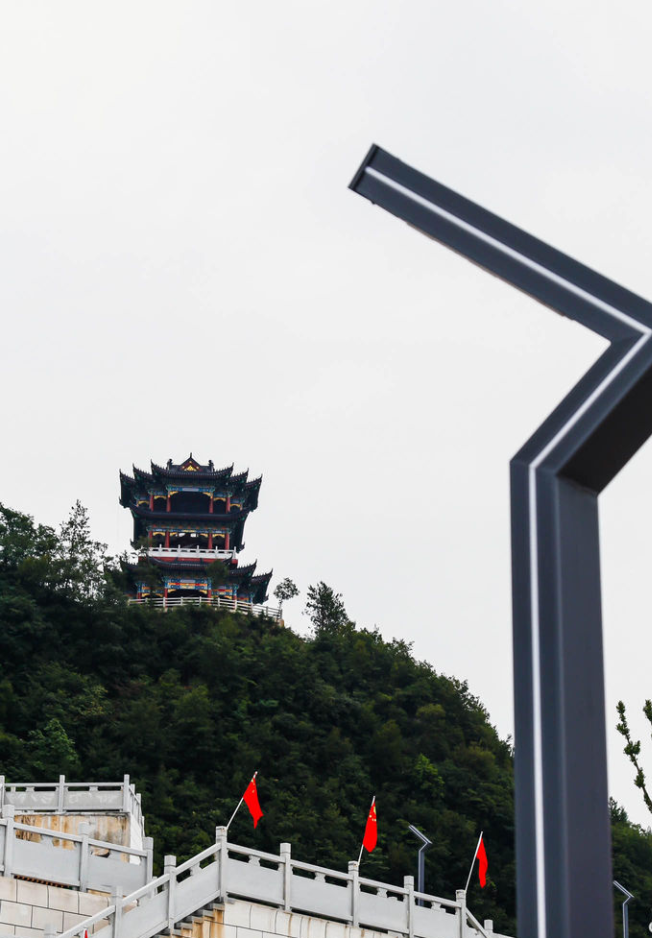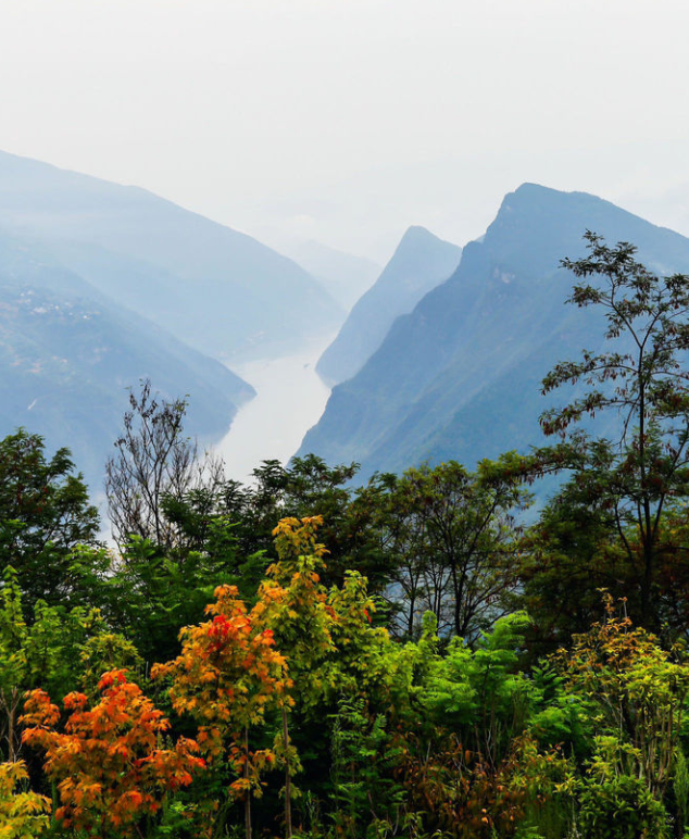 如果說(shuō)文人的情思與文筆可以撩人心扉、啟發(fā)想象,具有精神和人文的美感。但眼前的佳山佳水,茂林江流,才是眼前的現(xiàn)實(shí)風(fēng)景。與古人的行路難不同,我們一行乘車可以直抵建在巫峽口對(duì)面山嵐之上的觀景臺(tái),俯瞰長(zhǎng)江,俯瞰巫峽,俯瞰人煙阜盛、屋舍儼然的巴東縣城。此時(shí)時(shí)令已是秋季,所以站在高臺(tái)之上,看眼前層嵐疊嶂、看眼底江水奔來(lái)、看漫山綠意中的紅葉點(diǎn)染,頓生“登高壯觀天地間 ,大江茫茫去不還”的雄渾與豪情,頓生“兩岸猿聲啼不住 ,輕舟已過(guò)萬(wàn)重山”的輕快與舒暢!