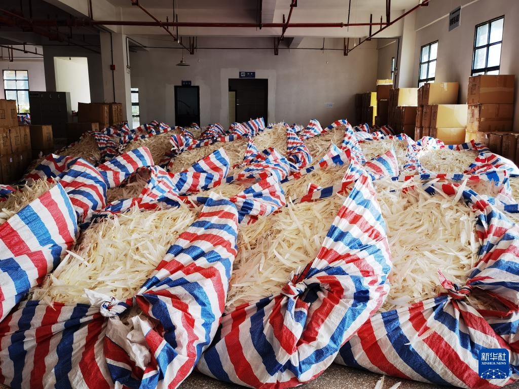這是7月16日在貴州亞獅龍體育文化產(chǎn)業(yè)發(fā)展有限公司內(nèi)拍攝的加工后的羽毛(手機照片)。新華社記者 向定杰 攝