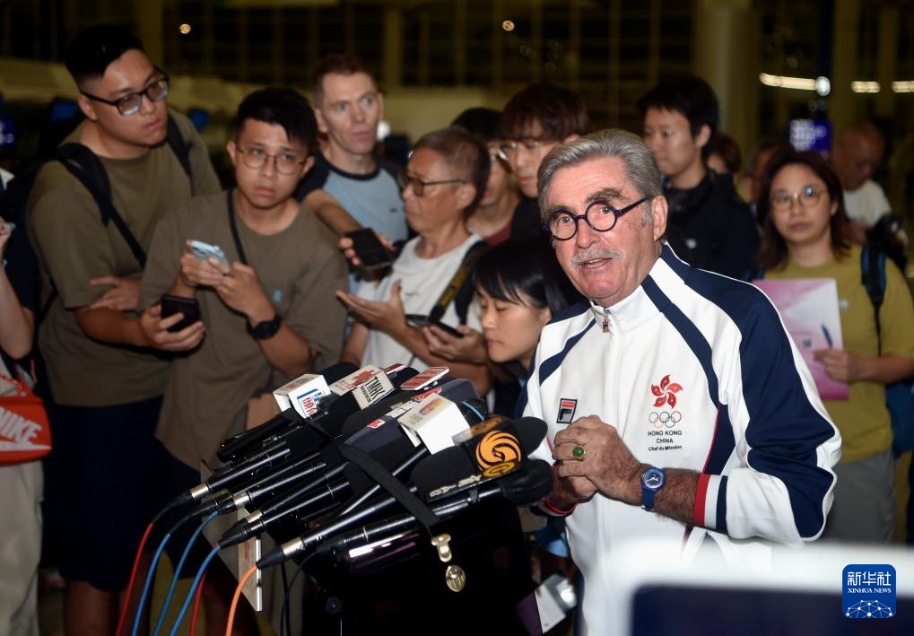 7月22日,中國香港體育代表團團長施文信(前)接受媒體采訪。新華社記者 盧炳輝 攝