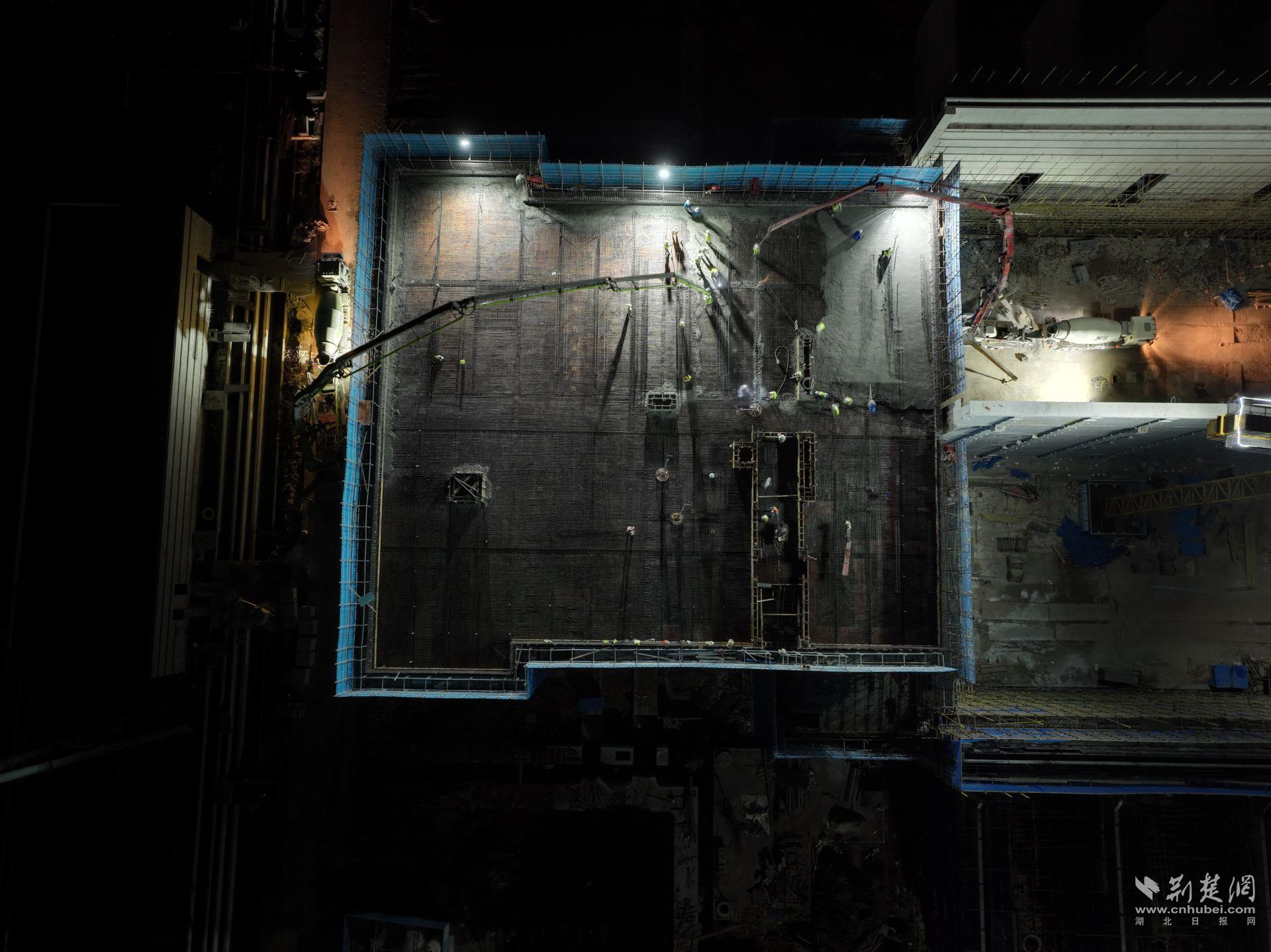 近日,湖北送變電公司施工人員運用夜間時間進行主控樓屋面層施工。
