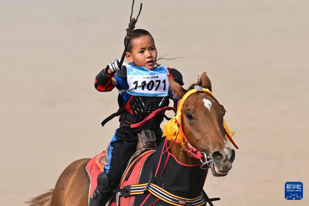 7月15日,阿吉太在那達(dá)慕二歲馬八8公里賽馬比賽中。新華社記者 李志鵬 攝