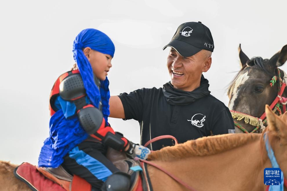 7月11日,阿吉太(左)和父親哈斯敖其爾在訓(xùn)練后。新華社記者 李志鵬 攝