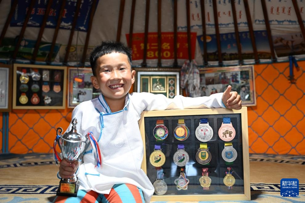 12歲的少年車(chē)?yán)漳矩晠⒓恿速愸R和搏克兩項(xiàng)比賽。今年12歲的車(chē)?yán)漳矩晱?歲開(kāi)始騎馬,7歲開(kāi)始學(xué)習(xí)搏克。一放暑假,車(chē)?yán)漳矩暠慊氐郊抑性诟赣H和舅舅的指導(dǎo)下訓(xùn)練賽馬和搏克。在本屆自治區(qū)那達(dá)慕青少年組搏克比賽中,車(chē)?yán)漳矩暙@得了第八名的成績(jī)。“我在電視上看那些搏克手的視頻,覺(jué)得很霸氣、很有力量感,下次那達(dá)慕我要拿冠軍。”車(chē)?yán)漳矩曊f(shuō)。