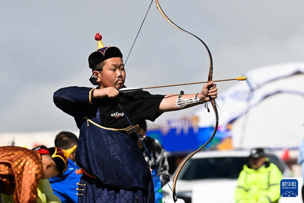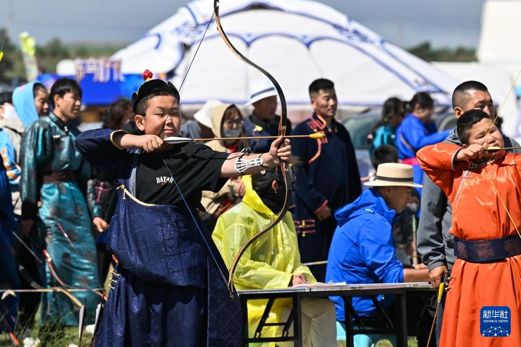 7月16日,額尼日勒在那達(dá)慕射箭比賽中。新華社記者 李志鵬 攝