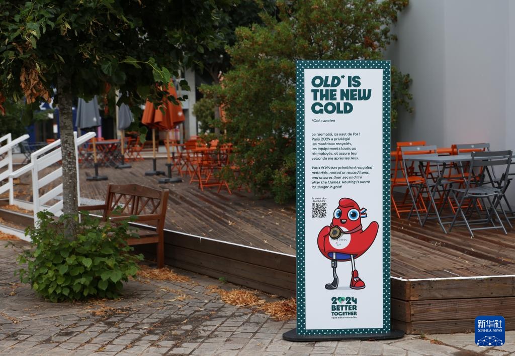 這是7月23日在羅蘭·加洛斯體育場(chǎng)拍攝的奧運(yùn)宣傳海報(bào)。新華社記者 高靜 攝