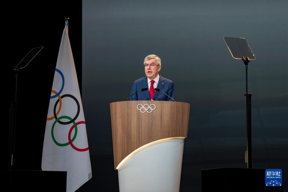 7月23日,國際奧委會主席巴赫在會上致辭。新華社記者 孫非 攝