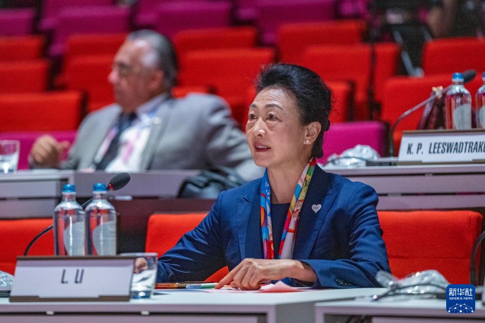 7月23日,國際奧委會委員、中國奧委會副主席李玲蔚在會上。新華社記者 孫非 攝