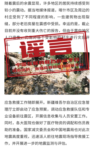 謠言:新疆喀什發(fā)生6.3級地震?