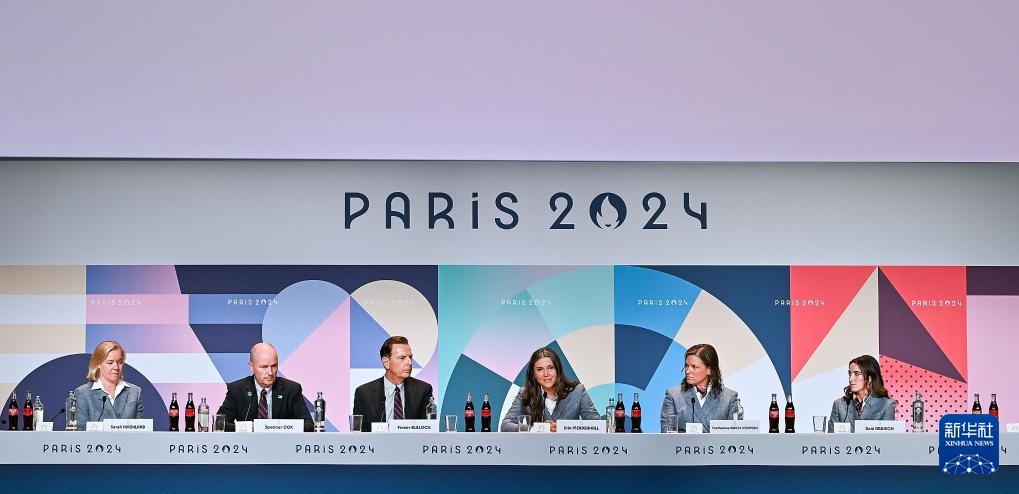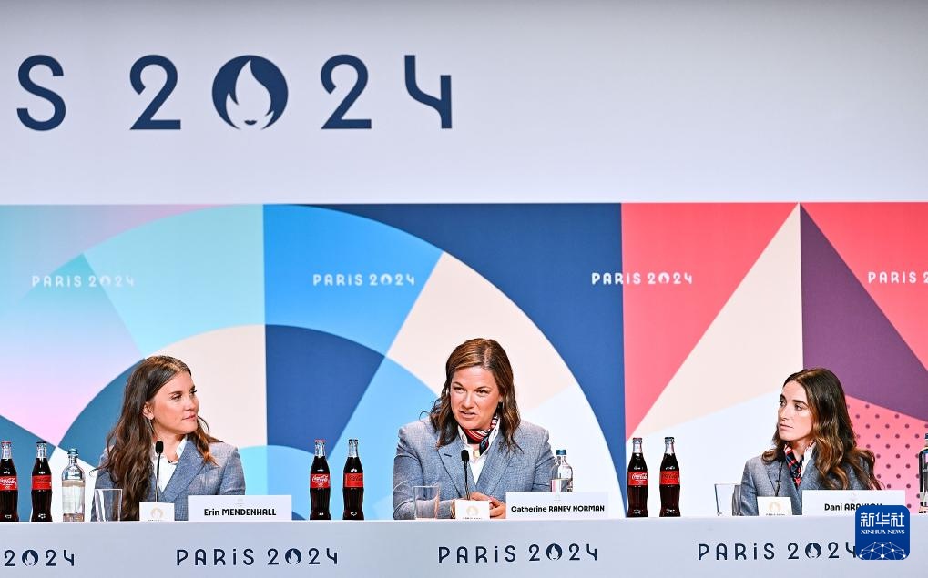 7月24日,美國前速度滑冰運動員凱瑟琳·拉尼·諾曼(中)在發(fā)布會上發(fā)言。新華社記者 鄔惠我 攝