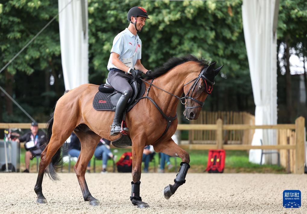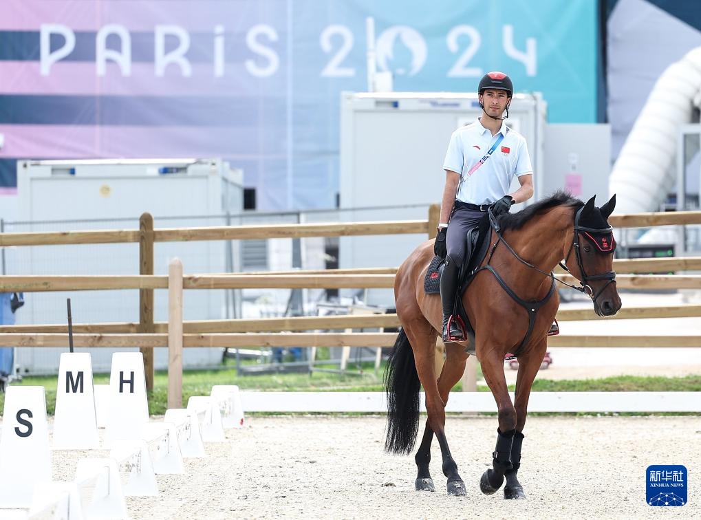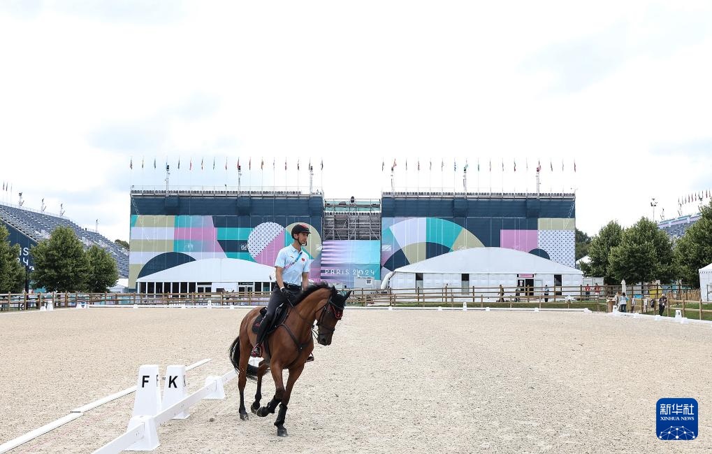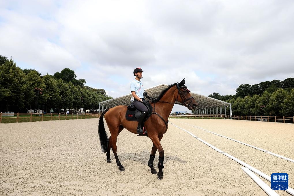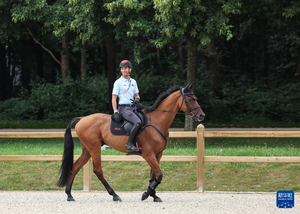 當天,中國馬術運動員華天、孫華東與賽馬在巴黎奧運會馬術比賽訓練場地進行訓練。巴黎奧運會馬術比賽項目將于7月27日迎來首個比賽日。