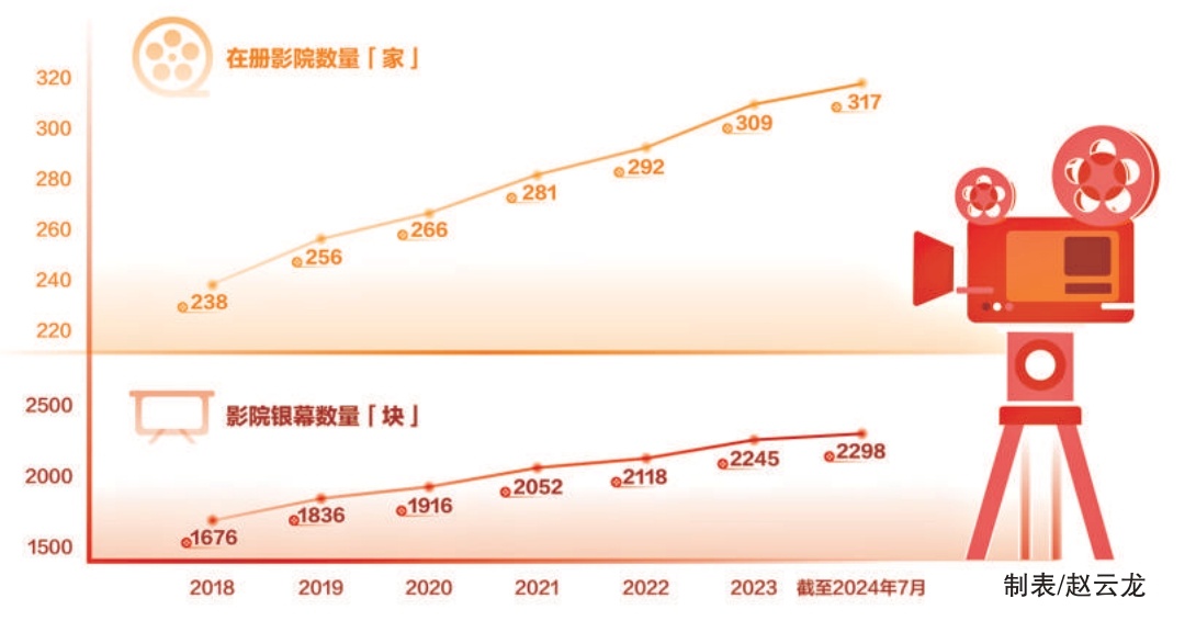 近年來,北京影院數量位居全國城市影院前列,覆蓋城鄉的首都影院體系初具規模。根據北京市電影局提供的數據,截至目前,全市在冊影院總數達到317家,銀幕數2298個,座位總數294879個。與2018年相比,影院數量增加33%,銀幕數量增加37%。