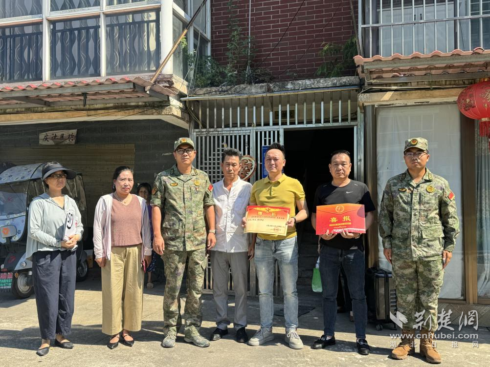 荊楚網(wǎng)(湖北日報網(wǎng))訊( 通訊員 王新宇 熊成)近日,洪湖市沙口鎮(zhèn)武裝部聯(lián)合鎮(zhèn)退役軍人事務(wù)站和沙口社區(qū)組成“送喜團(tuán)”,向沙口社區(qū)現(xiàn)役軍人董凱旋家庭送去榮立三等功喜報及慰問金,并向立功受獎的現(xiàn)役軍人家屬表示熱烈祝賀和崇高敬意。