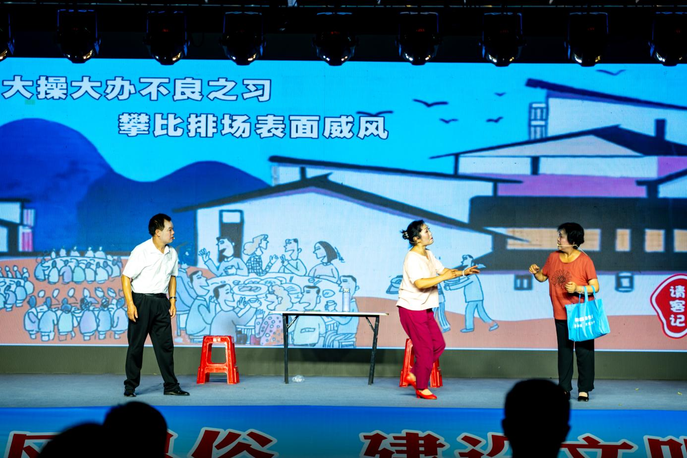 此次主題宣傳示范活動以宣傳展覽、微宣講、文藝演出等群眾喜聞樂見方式進(jìn)行。相關(guān)市部門結(jié)合自身工作職能制作了宣傳展牌40余塊,內(nèi)容涵蓋高額彩禮、家風(fēng)建設(shè)、殯葬改革、生育新風(fēng)等移風(fēng)易俗相關(guān)內(nèi)容。安陸市人民法院、市民政局分別圍繞治理高額彩禮、殯葬改革開展了微宣講。文藝演出中,朗朗上口的快板曲目《新風(fēng)贊》演繹了婚喪嫁娶中打破陳規(guī)陋習(xí)、湖北小曲《特別彩禮》講述了現(xiàn)代青年以“科學(xué)技術(shù)”代替“傳統(tǒng)彩禮”新興婚嫁故事、小品《請客記》與三句半《薄養(yǎng)與厚葬》講述了村民紅白喜事簡辦新辦的風(fēng)尚。各式各樣的文藝節(jié)目寓教于樂,從百姓身邊小事出發(fā),引導(dǎo)廣大群眾爭做文明新風(fēng)的倡導(dǎo)者和實(shí)踐者。