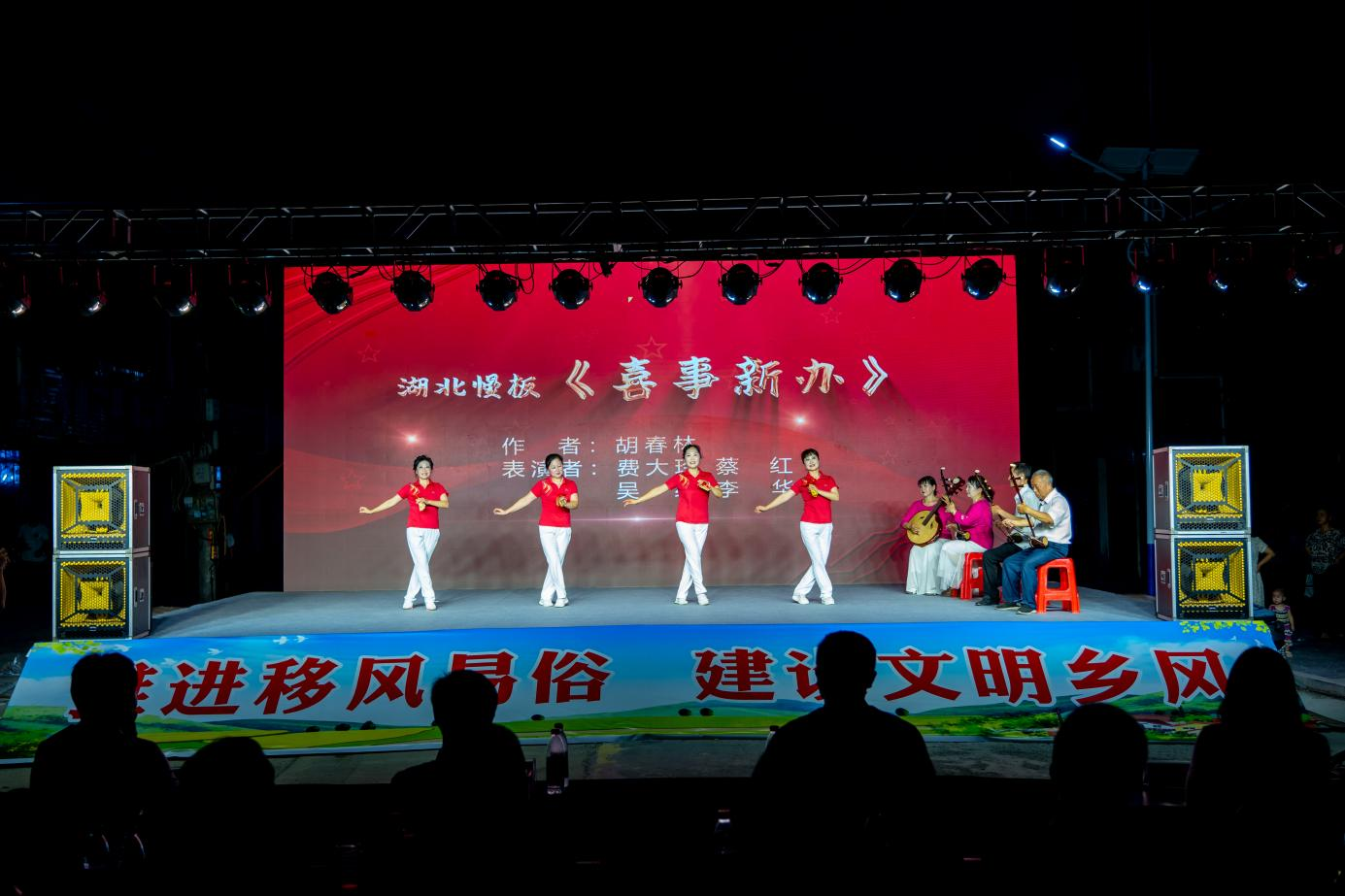 活動從晚上7點(diǎn)持續(xù)至八點(diǎn)半,現(xiàn)場氣氛熱烈,群眾看得津津有味、拍手叫好。安陸市委宣傳部副部長倪全安說: “近年來,為深入推進(jìn)移風(fēng)易俗、建設(shè)文明鄉(xiāng)風(fēng),加強(qiáng)農(nóng)村精神文明建設(shè),我市依托農(nóng)家書屋、鄉(xiāng)風(fēng)文明志愿崗、百姓講堂、“村村響”廣播等各類功能資源,采取“宣講+文藝”方式,開展“百場理論宣講進(jìn)基層”和移風(fēng)易俗文藝演出活動,營造宣傳搭臺、共同“唱戲”的大宣講格局,引領(lǐng)廣大群眾摒棄陳規(guī)陋習(xí),引導(dǎo)群眾“移”出新風(fēng)尚、“易”出新生活。”