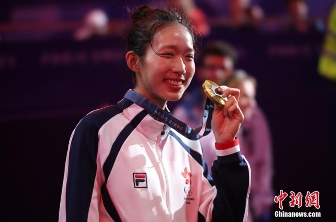 當地時間7月27日,法國巴黎,中國香港選手江旻憓獲得巴黎奧運會擊劍女子個人重劍金牌,這也是巴黎奧運會中國香港代表團首金。中新社記者 盛佳鵬 攝