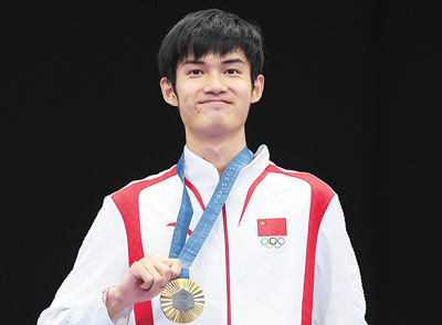 當地時間7月29日,盛李豪在頒獎儀式上。 新華社記者 趙丁喆攝 |