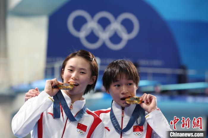 當日比賽前兩輪規定動作后,全紅嬋和陳芋汐相比第二名已建立起15分的領先優勢。隨后的自選動作中,兩人發揮穩定,每一跳都將領先優勢進一步擴大,最終以359.10分摘金,為中國隊完成該項目奧運七連冠。這也是跳水“夢之隊”為中國贏得的第50枚奧運金牌。